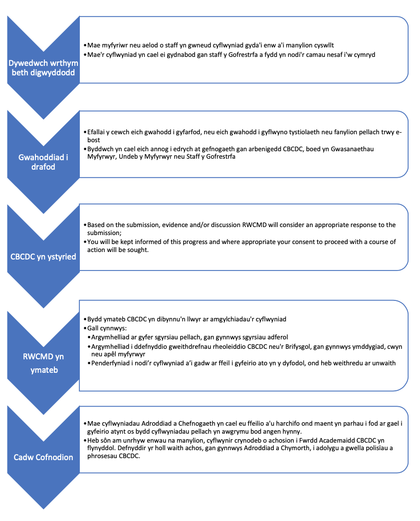 RWCMD siart llif Adrodd a chymorth.png